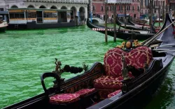 【国際】ベネチアの運河が緑に、環境活動家が抗議で染料流し込む