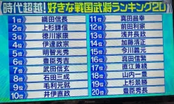 【画像】最新の「好きな戦国武将ランキング」、北条も斎藤も島津も大友も長宗我部もランキング圏外w